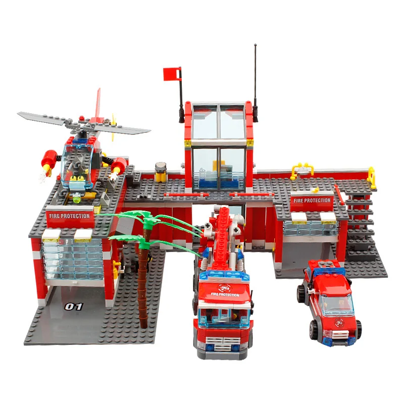 774pcs 8051 City Fire Station Truck Helicopter Firefighter Building Blocks