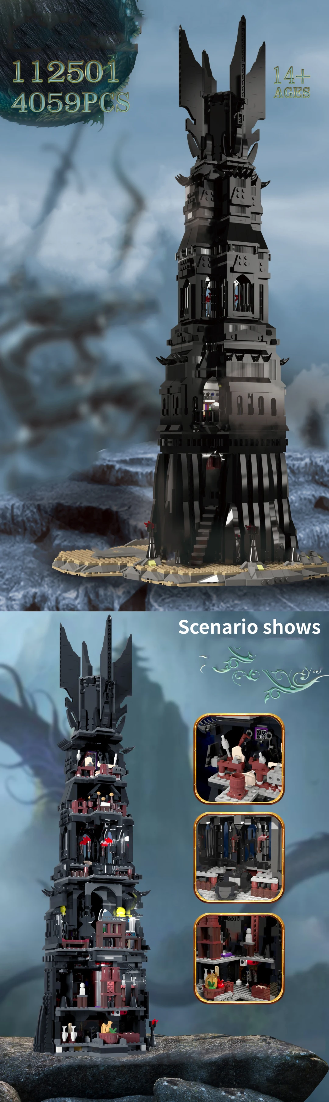 MOC The Tower of Orthanc 4059PCS 112501 Movie Series Building Blocks