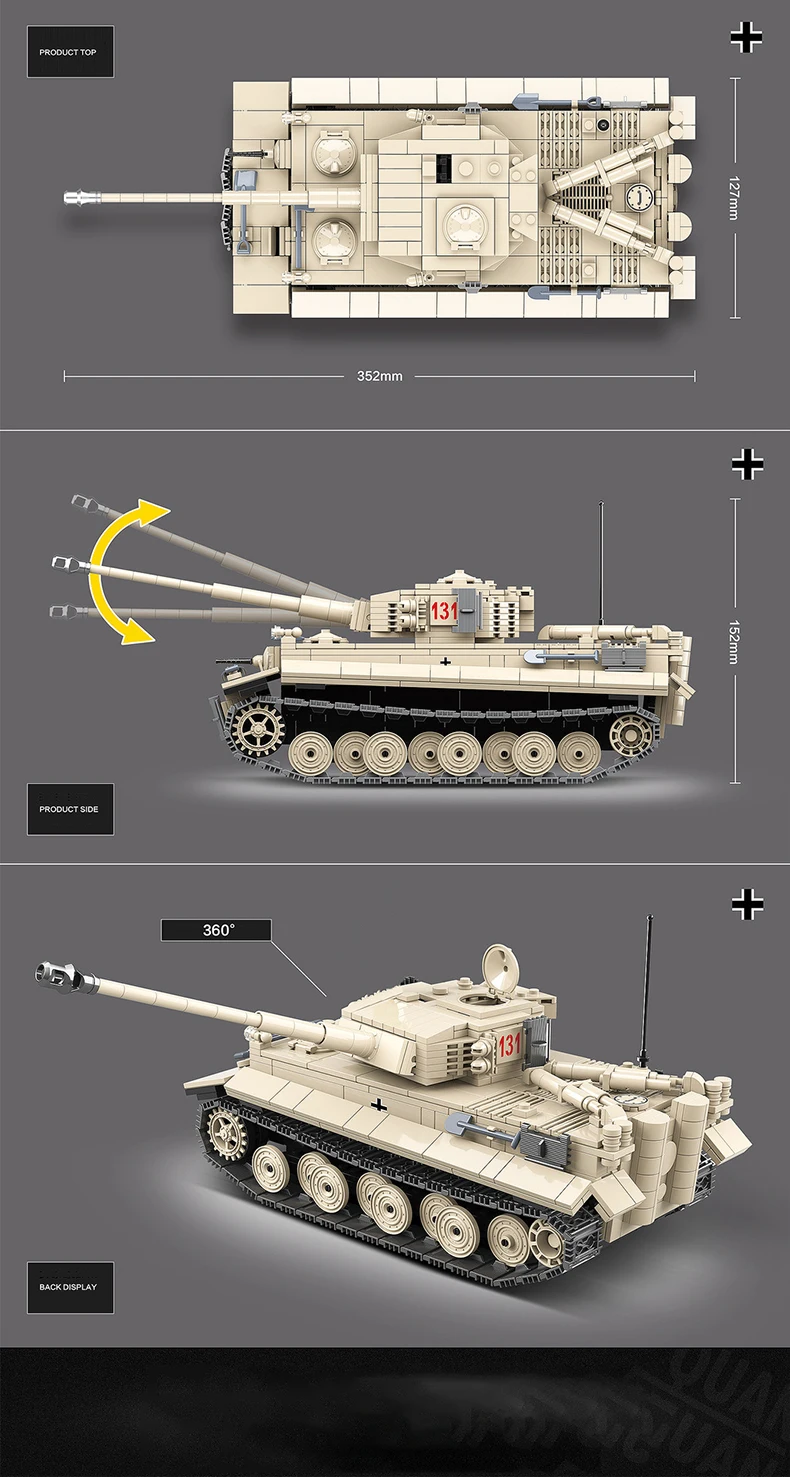 World War II 2 Military Germany Tiger Tank 131 UK Model Soldier Vehicle Building Blocks WW2
